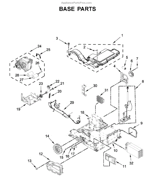 Parts for Whirlpool YWHD560CHW2: Base Parts
