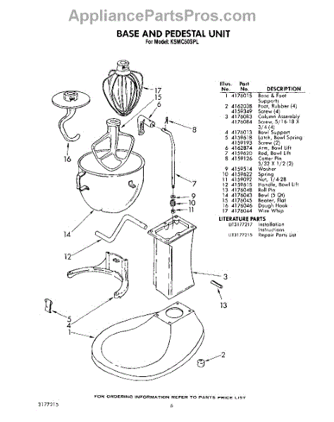 Parts for Kitchenaid KSMC50SPL: 06 - Base And Pedestal , Lit / Optional Parts