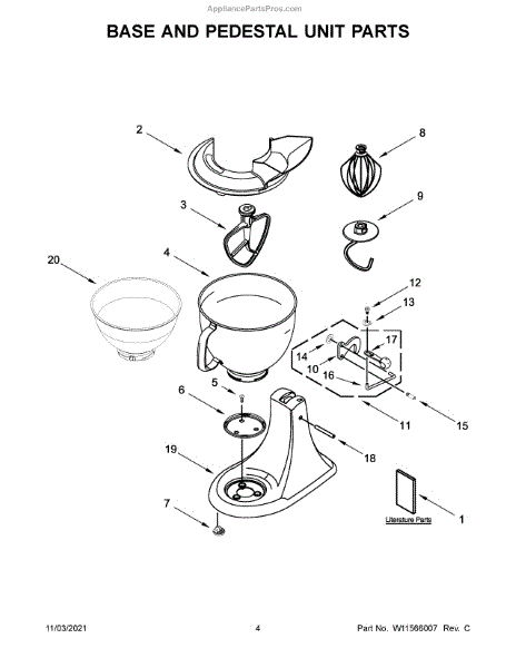 Parts for Kitchenaid KSM195PSMS0: Base And Pedestal Unit Parts