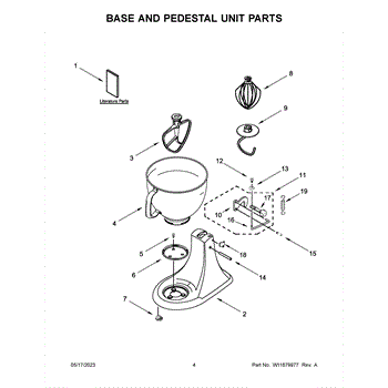 Parts for Kitchenaid 5KSM125BMH5: Base And Pedestal Unit Parts