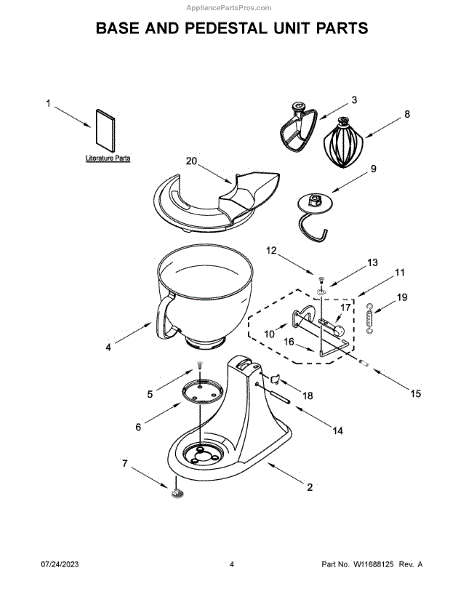 Parts for Kitchenaid 5KSM150PSTBM5: Base And Pedestal Unit Parts