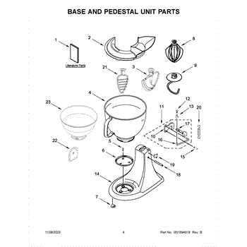 Parts for Kitchenaid 5KSM195PSAFT5: Base And Pedestal Unit Parts