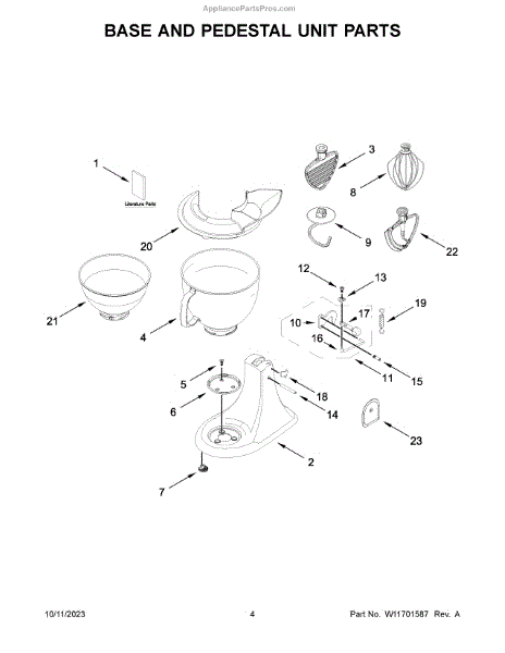 Parts for Kitchenaid 5KSM195PSRBE5: Base And Pedestal Unit Parts