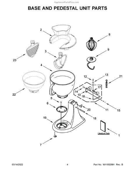 Parts for Kitchenaid 5KSM195PSWMH0: Base And Pedestal Unit Parts