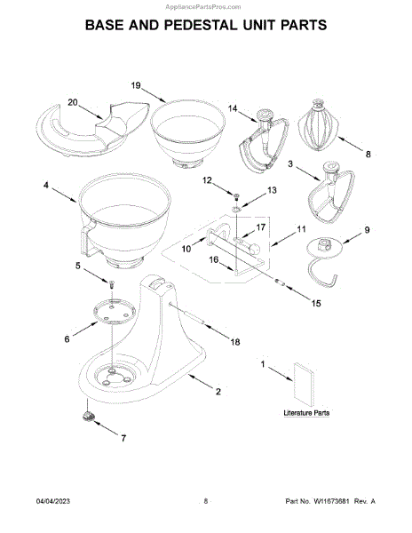 Parts for Kitchenaid KSM175PSHY5: Base And Pedestal Unit Parts