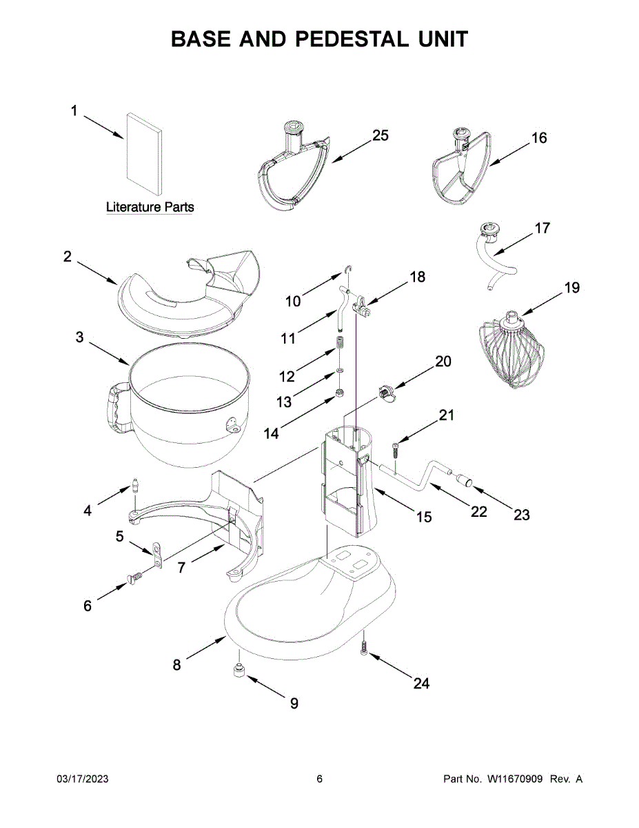Plastic lift arm that raises and lowers the mixing bowl on stand mixers. Replace if cracked, broken, or worn from frequent use and age.
