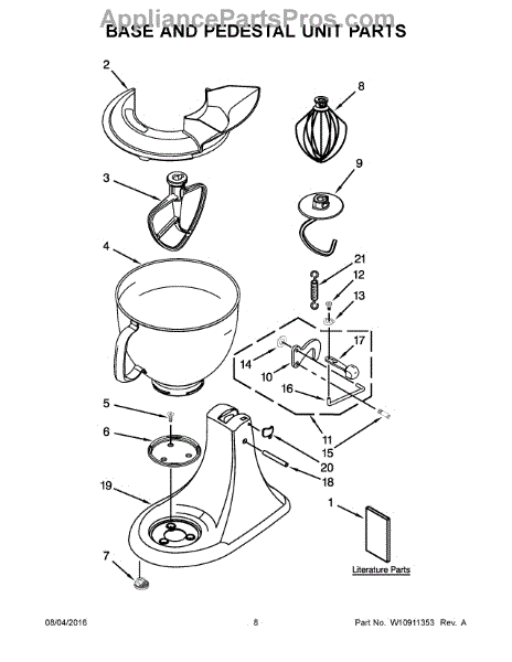 Parts for Whirlpool 3KSM150PSTBW0: 05 - Base And Pedestal Unit Parts