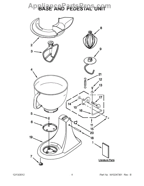 Parts for Whirlpool 5KSM150PSCWH0: 02 - Base And Pedestal Unit Parts