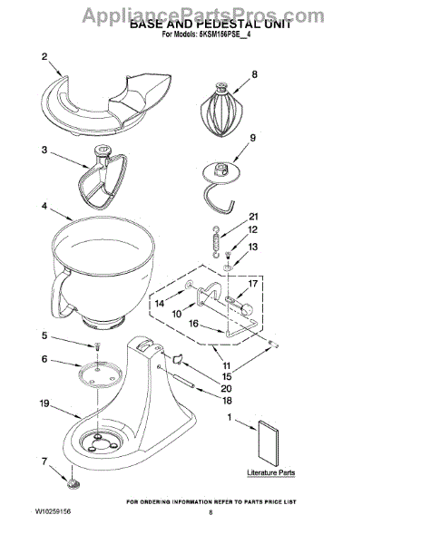 Parts for Whirlpool 5KSM156PSECA4: 04 - Base And Pedestal Unit Parts
