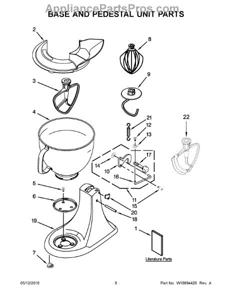 Parts for Whirlpool 5KSM175PSSGA4: 05 - Base And Pedestal Unit Parts