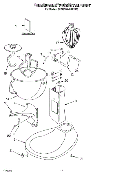 Parts for Whirlpool 8KP2670: 02 - Base And Pedestal Unit And Accessory Parts