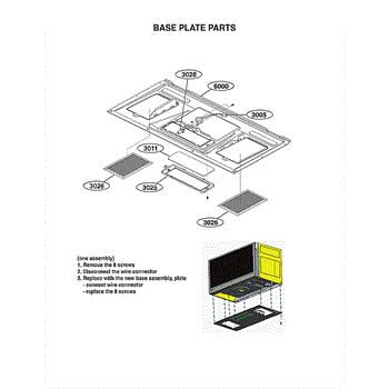 This bottom plate is the interior panel that covers and protects the oven or microwave floor, giving a clean cooking surface and shielding internal components from spills and debris. It helps maintain safe, reliable operation. What it does: