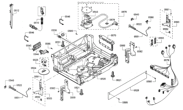 The Base Panel is an OEM part for Bosch dishwashers. It forms the floor structure inside the dishwasher tub on which racks and components sit. Symptoms of a problematic base panel include: