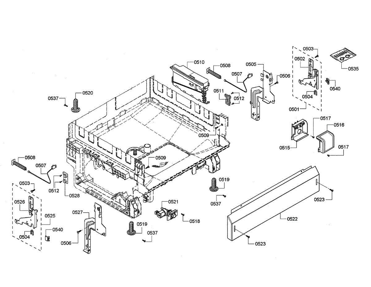 The Support is an OEM part for Bosch dishwashers. This part supports the door hinges, ensuring that the dishwasher door opens and closes smoothly and securely. The hinge support is vital for maintaining the alignment of the door, preventing stress on o