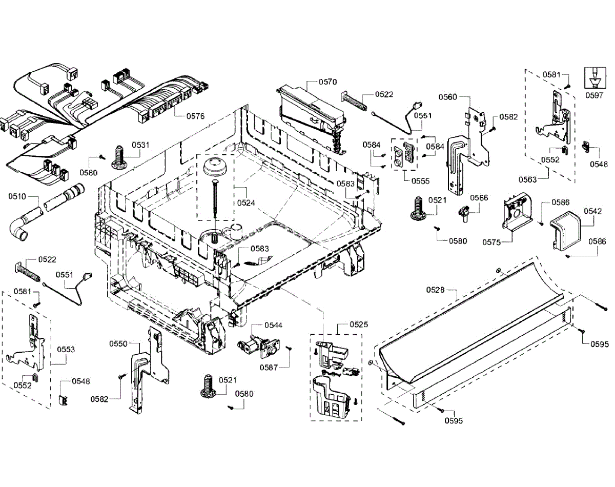 Replacement dishwasher housing cabinet that restores the outer enclosure. Needed when the original is cracked, broken, or damaged, compromising stability.