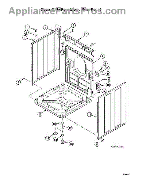 Hex washer head screw for dryers and laundry centers. Secures panels, components, and internal parts. Replace if stripped, missing, or damaged.