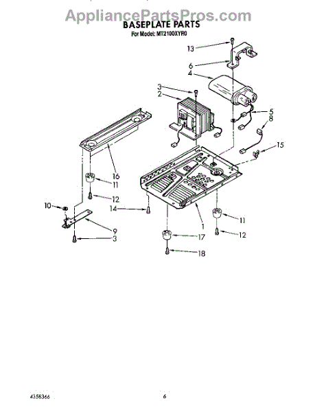 Parts for Whirlpool MT2100XYR0: 05 - Baseplate Parts