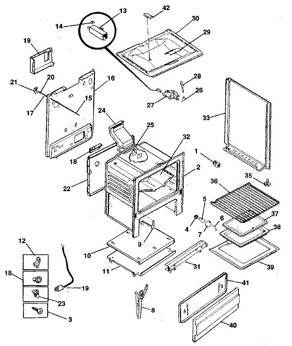 Secures range wiring to the cabinet to prevent loose or pinched wires. Replace if clips are broken or wires hang loose. Verify fit by model number.