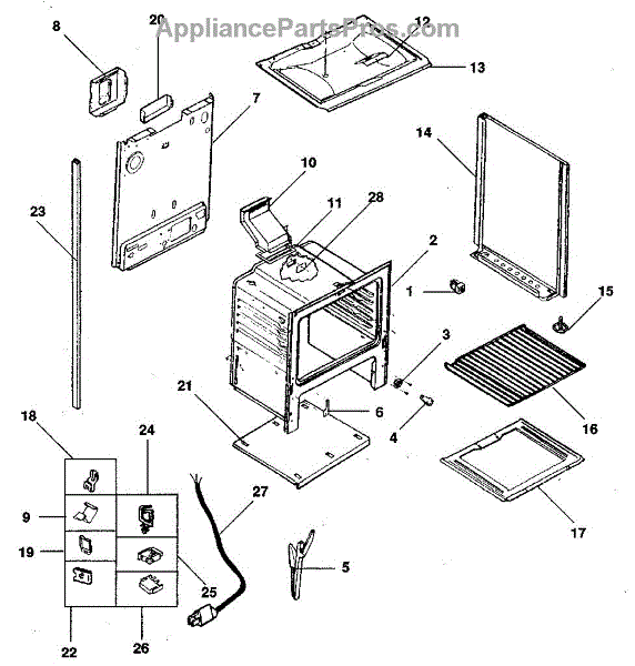 Secures panels and components in your range or oven. Replace if broken, bent, or missing to prevent shifting and reduce vibration noise. Confirm fit.