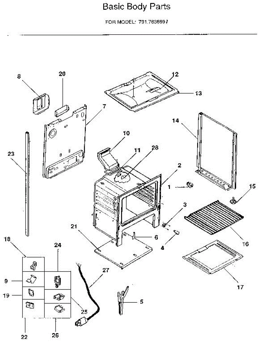 Secures range wiring to the cabinet to prevent loose or pinched wires. Replace if clips are broken or wires hang loose. Verify fit by model number.