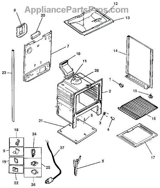 Secures range wiring to the cabinet to prevent loose or pinched wires. Replace if clips are broken or wires hang loose. Verify fit by model number.