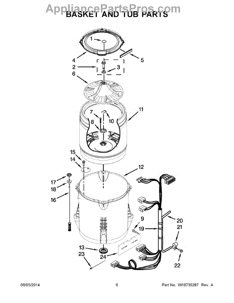 This is a Whirlpool washing machine basket. The washing machine basket holds laundry during a wash cycle. The basket may become damaged over time due to normal wear and tear, which can be exacerbated by overloading laundry or using the wrong amount of detergent. When the basket starts to become damaged or malfunction, noticeable noise increases may take place during use. Eventually, the damage will lead to the basket failing to spin. The old basket can be removed by first removing the top portion by pushing the fastening clips that hold it in place. After removing the top, reach down to remove the softener cup. Using a socket, unfasten the agitator at the bottom of the basket. After removing the agitator, the basket should easily lift out of the machine.This part is a genuine OEM product and is sourced directly from the manufacturer. It is intended for use in Whirlpool, Maytag, Kenmore, and Crosley appliances.