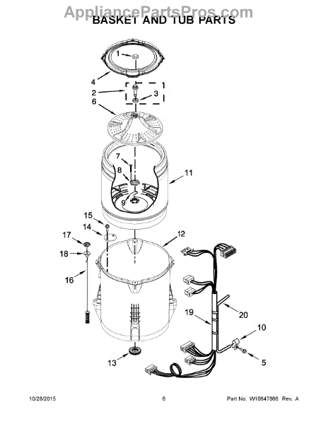 This is a Whirlpool washing machine basket. The washing machine basket holds laundry during a wash cycle. The basket may become damaged over time due to normal wear and tear, which can be exacerbated by overloading laundry or using the wrong amount of detergent. When the basket starts to become damaged or malfunction, noticeable noise increases may take place during use. Eventually, the damage will lead to the basket failing to spin. The old basket can be removed by first removing the top portion by pushing the fastening clips that hold it in place. After removing the top, reach down to remove the softener cup. Using a socket, unfasten the agitator at the bottom of the basket. After removing the agitator, the basket should easily lift out of the machine.This part is a genuine OEM product and is sourced directly from the manufacturer. It is intended for use in Whirlpool, Maytag, Kenmore, and Crosley appliances.
