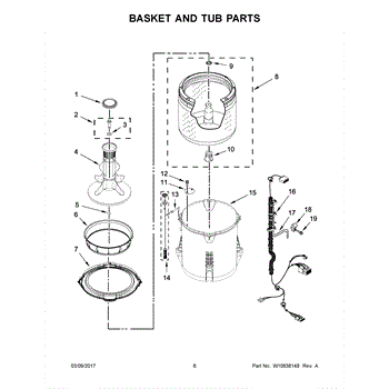 This tub ring, also called the tub cover or splash ring, snaps around the top of the wash basket to contain water and suds. Replacing a cracked ring helps stop over-the-rim leaks and protects fabrics from rough edges.