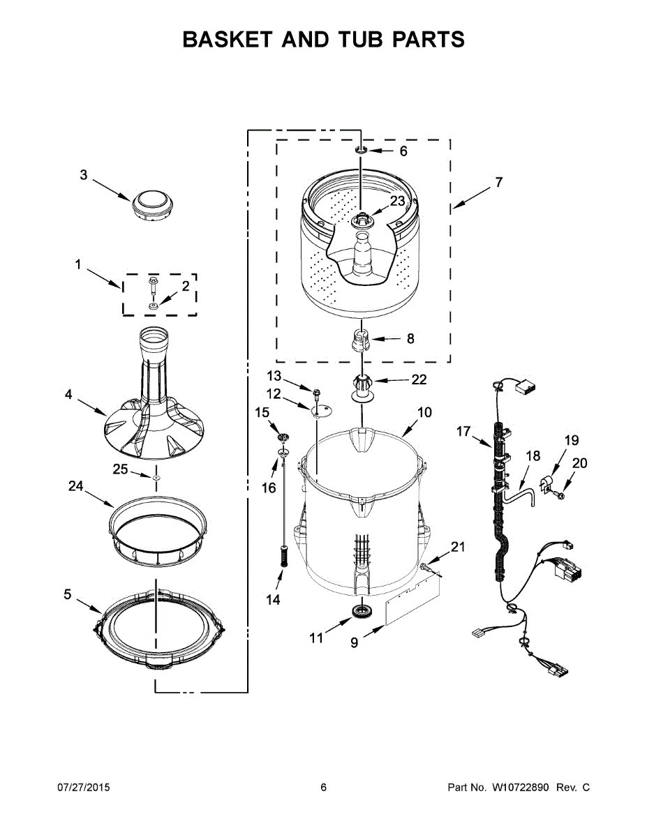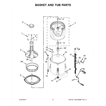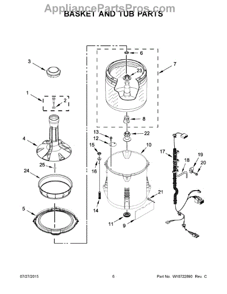 This tub ring, also called the tub cover or splash ring, snaps around the top of the wash basket to contain water and suds. Replacing a cracked ring helps stop over-the-rim leaks and protects fabrics from rough edges.