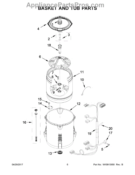 This tub ring is the replacement sealing ring that fits around the washer's outer tub to help keep the wash basket secured and reduce vibration. It restores proper sealing and alignment for reliable washer operation. What it does: