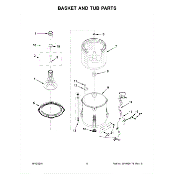 Washer tub seal prevents water leaks between outer tub and inner basket. Replace if you notice leaking from below. Confirm fit with your model number.