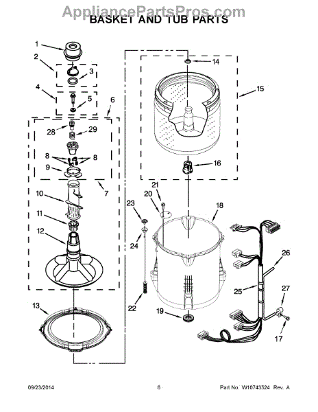 Washer tub seal prevents water leaks between outer tub and inner basket. Replace if you notice leaking from below. Confirm fit with your model number.