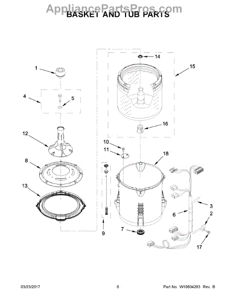 The Tub Seal is an OEM part for Whirlpool washing machines. Located between the outer tub and inner basket, it forms a barrier preventing leaks that could damage surrounding components and structures.