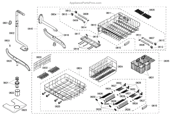 A replacement silverware basket that holds forks, knives and spoons during dishwasher cycles to keep small items separated for better cleaning and safer unloading. Fits in the lower dishwasher rack. What it does:
