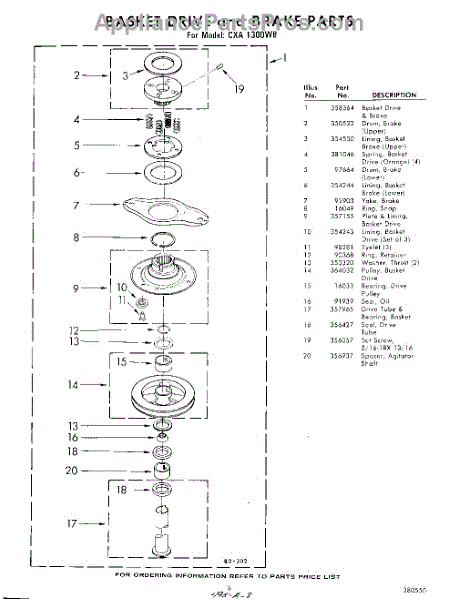Parts for Whirlpool CXA1300W8: 08 - Basket Drive And Brake Parts