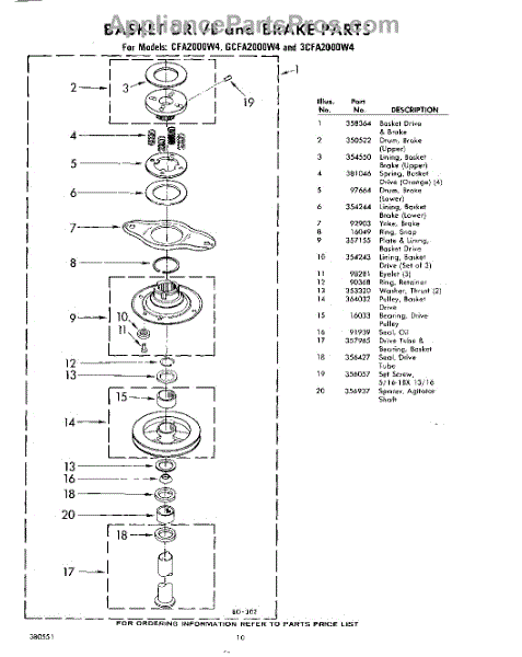 Parts for Whirlpool GCFA2000W4: 10 - Basket Drive And Brake Parts