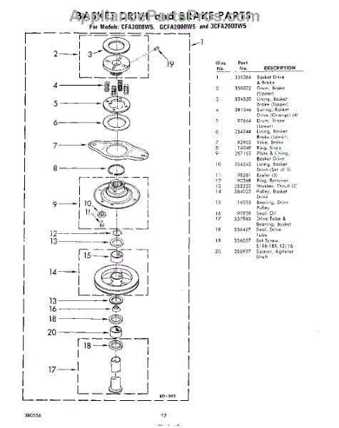 Parts for Whirlpool GCFA2000W5: 12 - Basket Drive And Brake Parts
