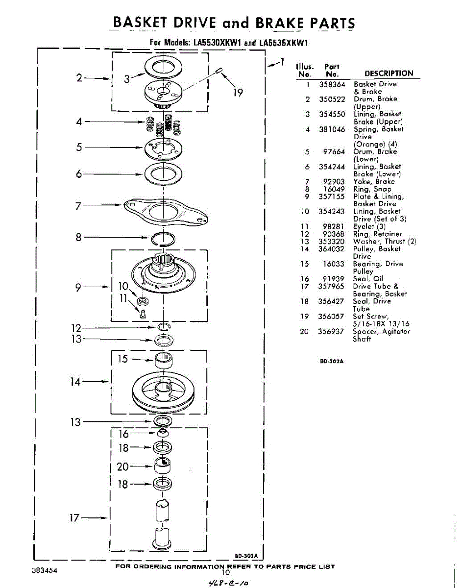 Parts for Whirlpool LA5535XKW1: 10 - Basket Drive And Brake Parts