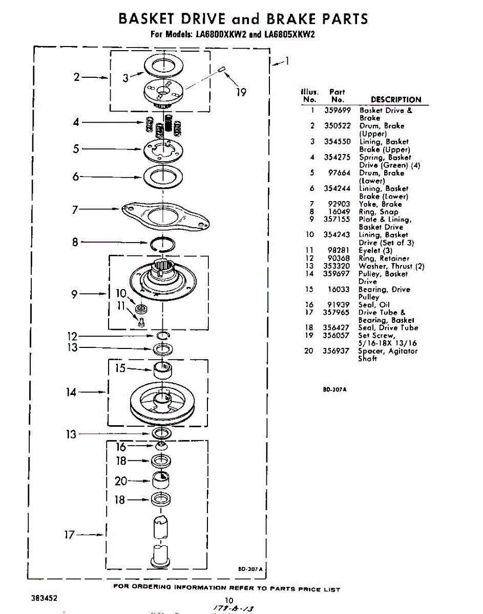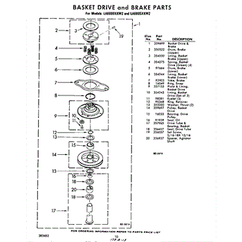 Parts for Whirlpool LA6800XKW2: 10 - Basket Drive And Brake Parts