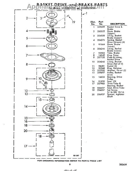 Parts for Whirlpool LA7685XKW0: 09 - Basket Drive And Brake Parts