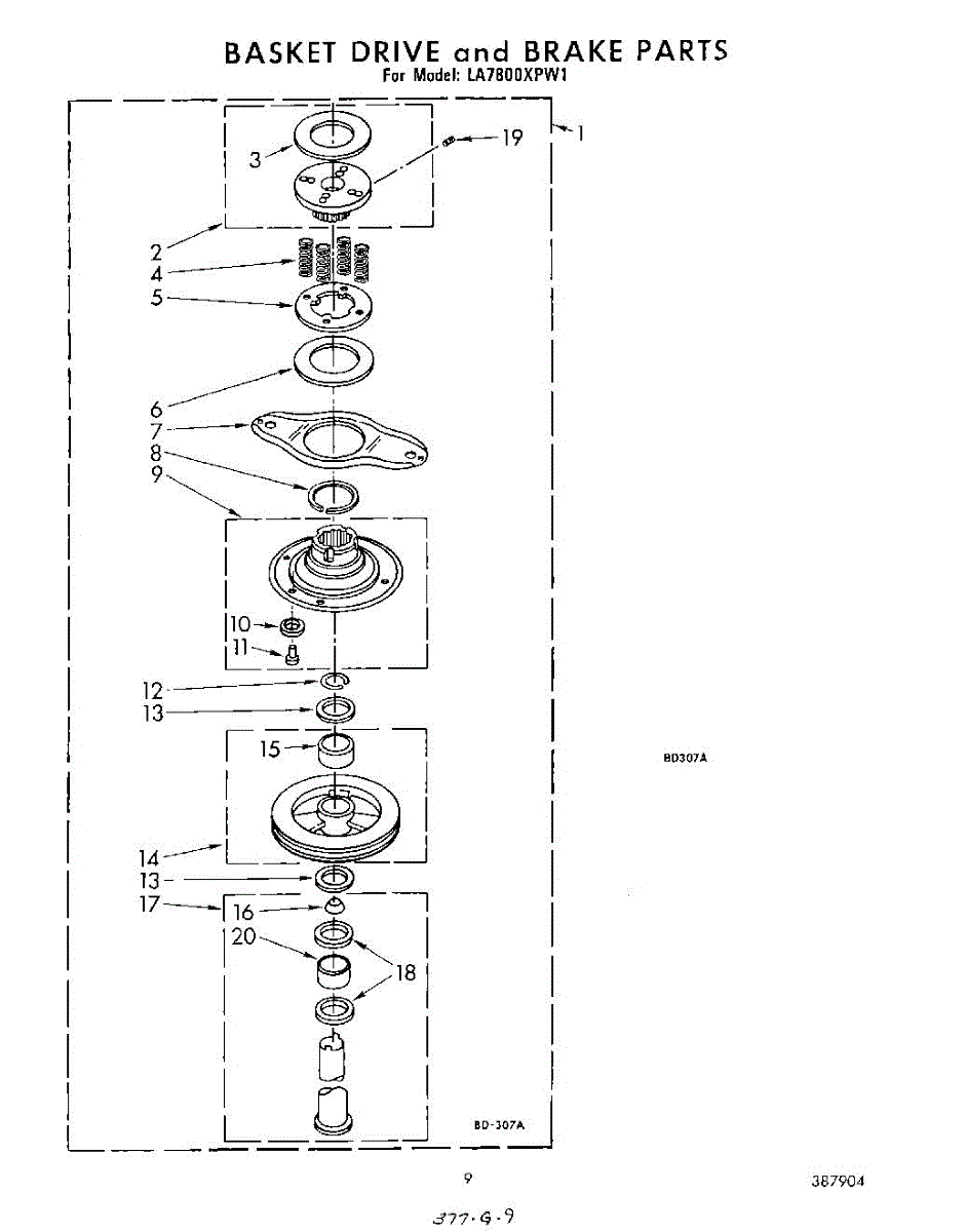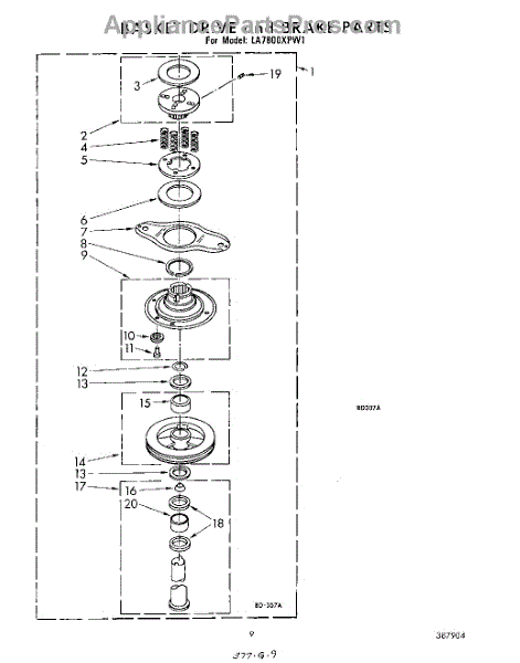 Parts for Whirlpool LA7800XPW1: 08 - Basket Drive And Brake Parts