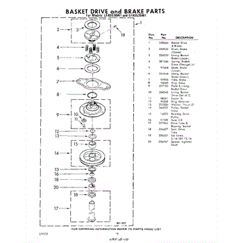 Parts for Whirlpool LFA5530W1: 10 - Basket Drive And Brake Parts