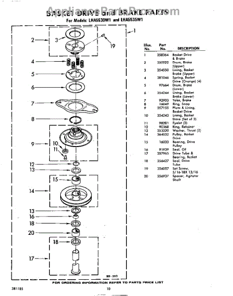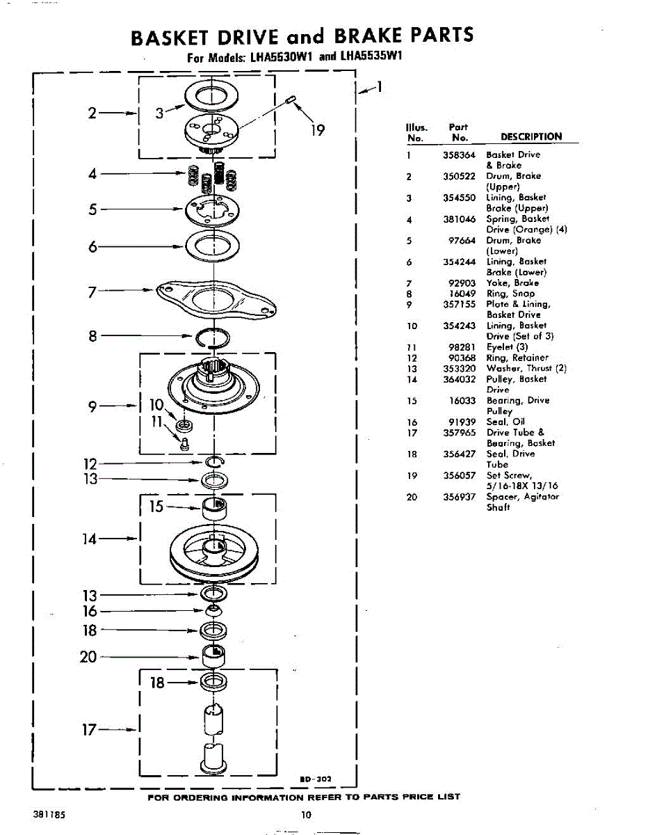 Parts for Whirlpool LHA5530W1: 10 - Basket Drive And Brake Parts
