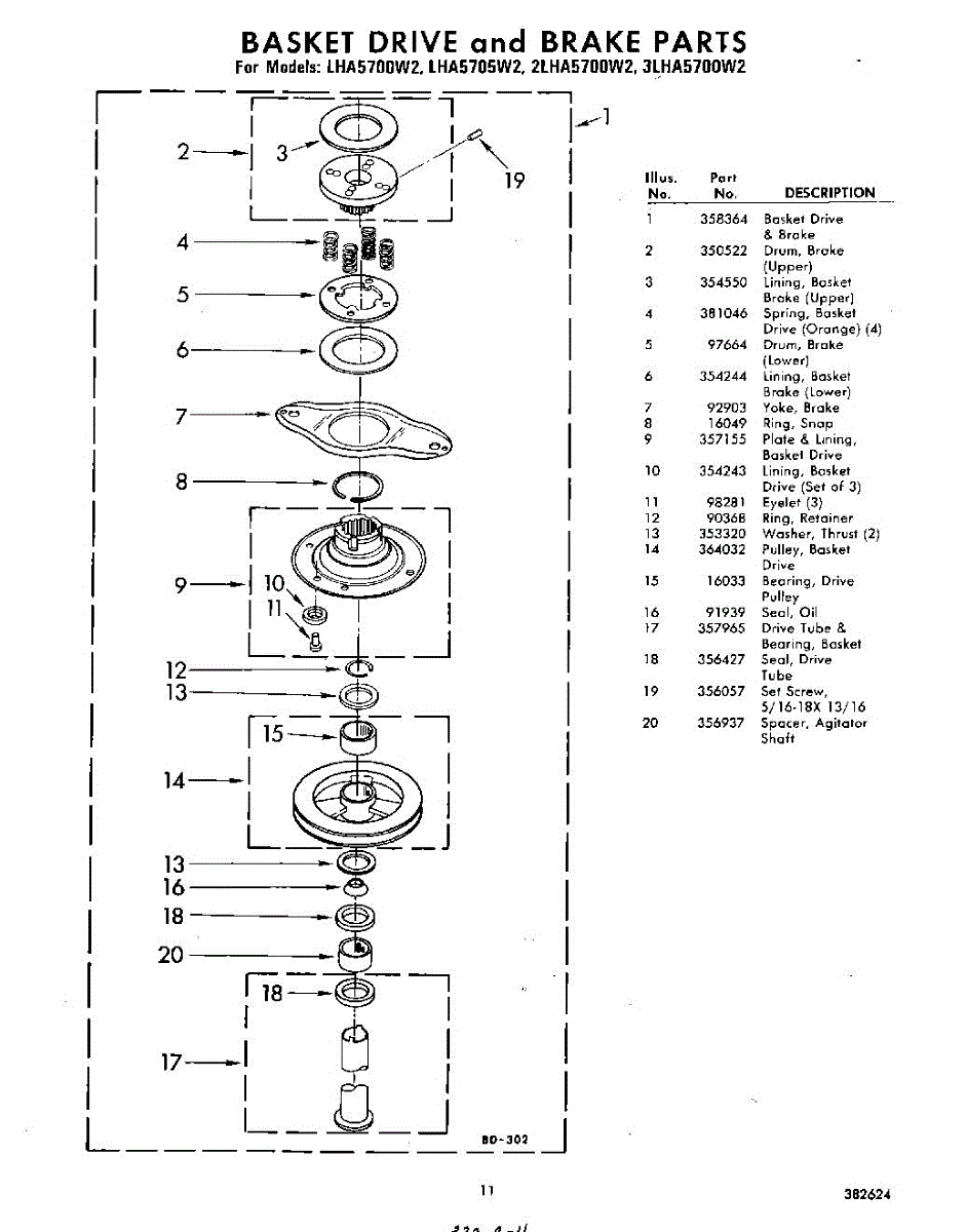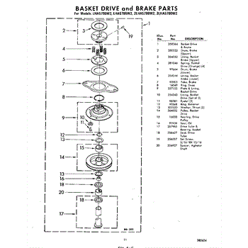 Parts for Whirlpool LHA5700W2: 11 - Basket Drive And Brake Parts
