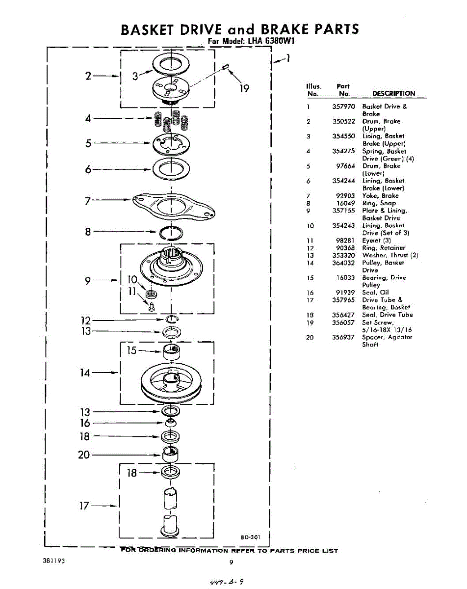 Parts for Whirlpool LHA6380W1: 09 - Basket Drive And Brake Parts