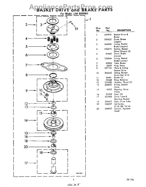 Parts for Whirlpool LHA6800W1: 09 - Basket Drive And Brake Parts