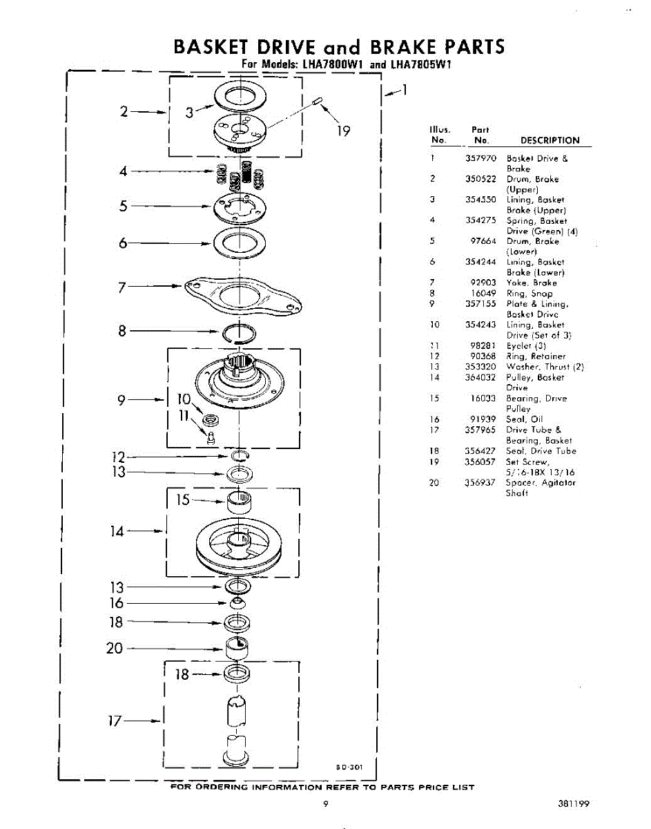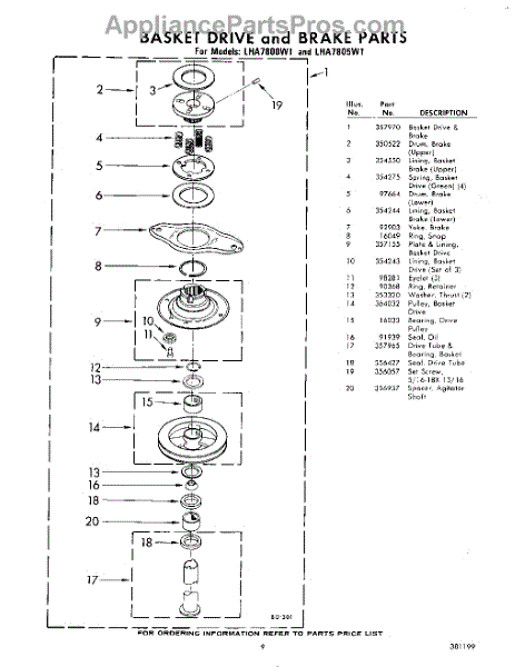 Parts for Whirlpool LHA7800W1: 09 - Basket Drive And Brake Parts