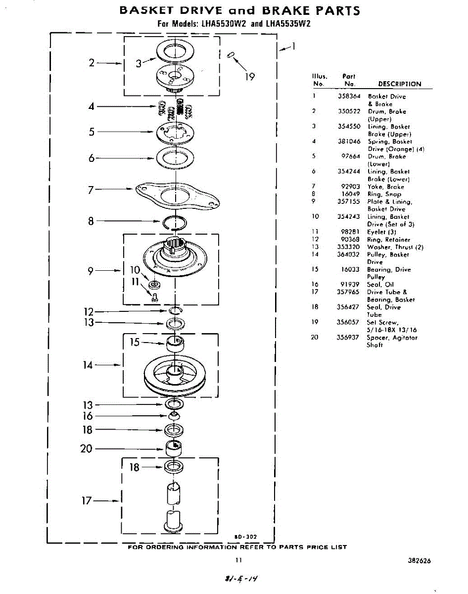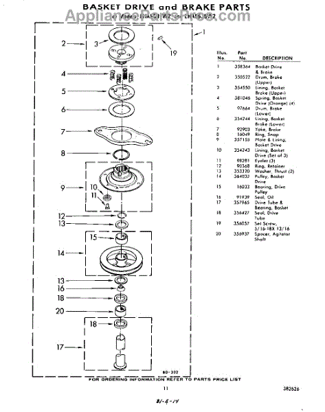 Parts for Whirlpool LHA5535W2: 11 - Basket Drive And Brakes Parts