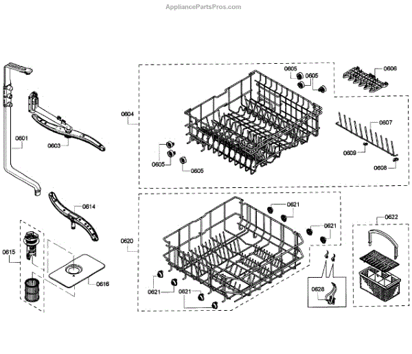Causes of a bad silverware basket can include damage from normal wear and tear over time or bending/warping from overload.