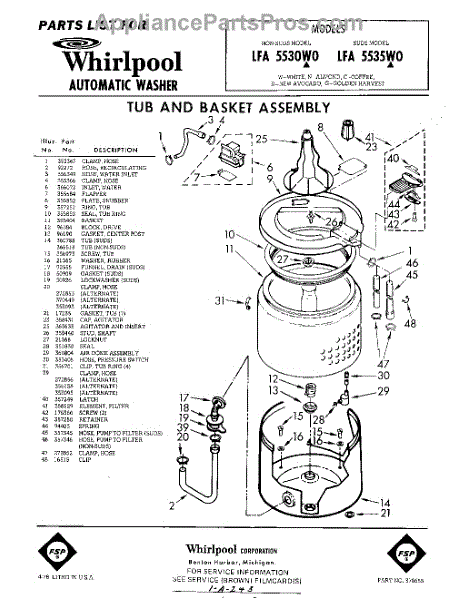 Parts for Whirlpool LFA5535W0: 01 - Basket Parts